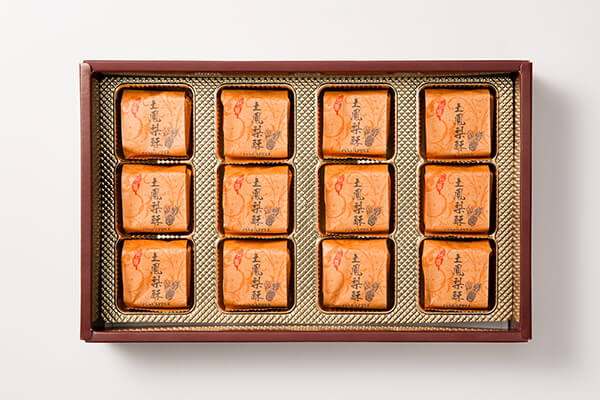 金黃色酥香爽口,入口即化細緻酥綿的餅皮,輕輕包裹著,帶點自然微酸清甜、帶點纖維的本土產鳳梨內餡,口感纖細融合。而鳳梨內餡乃是來自南台灣陽光下嚴選,自然鲜甜的土鳳梨,經長時間熬煮而成。品嚐一口,酥、鬆、香、酸甜,令人口齒留香,久久無法忘懷的絕品好滋味,這就是老師傅用心用情的獨特風味。